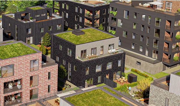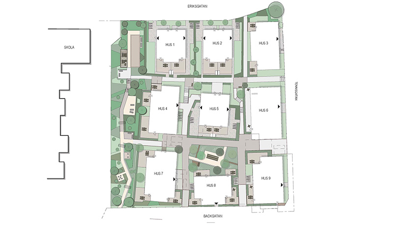 Bebyggelsen präglas av en varierad och genomtänkt arkitektur som skapar liv och karaktär i området. Genom att kombinera stilrena materialval, samtida formspråk och generösa ljusinsläpp får varje bostad sin egen identitet, samtidigt som helheten samspelar naturligt med den omkringliggande miljön.