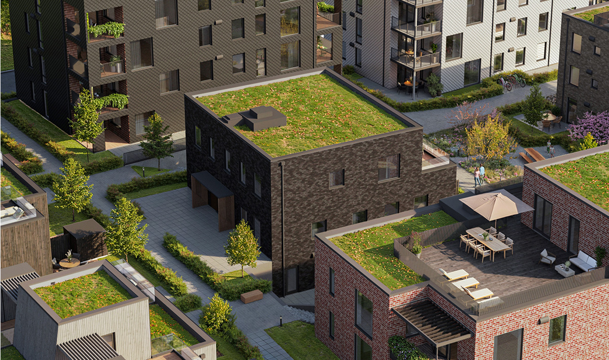 Med en mörk tegelfasad i rullskift tonas hus 5 ned för att inte ta för mycket plats trots sin ringa storlek. I ett skyddat läge innehåller denna huskropp endast 3 stycken spännande lägenheter. Där 2 lägenheter i etage har ett tydligt släktskap med parhusen i sina layouter. lägenheter har ytor mellan 126-146m2.