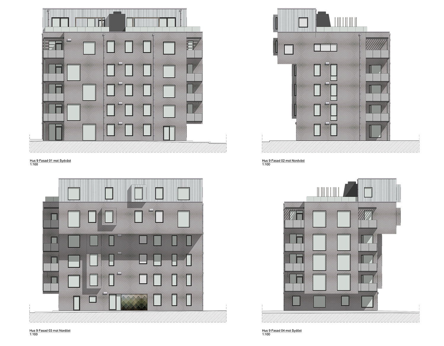 Huset har en fasad med plåtkassetter i ett mönster av romber med skuggbildande djup som ger ett modernt fjälliknande utseende. Husets form varierar sig mycket beroende på varifrån det betraktas, med utkragande och indragna volymer. Där fönster genomtänkt placerats efter utblickar och omkringliggande kvalitéer I denna byggnad ryms 15 stycken lägenheter på ytor mellan 43-141m2