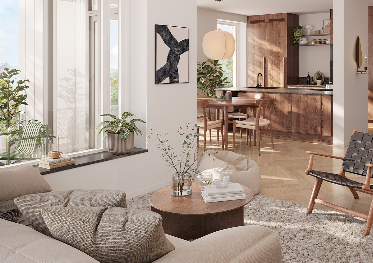 Alla lägenheter har genomgående hög standard där varje val, från golv till beslag, bär på en tanke om hållbar estetik och funktion. Här har vi valt ut några av treorna i Brf Fridnäs som du kan utforska närmare.